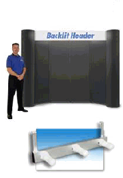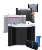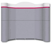 Monticello freestanding displays are fabric covered both sides and unfold like an accordion to set up in minutes. Attachable graphics travel in place. Monticello BL10 shown above in curve configuration with lights and graphics. Call for graphic pricing.